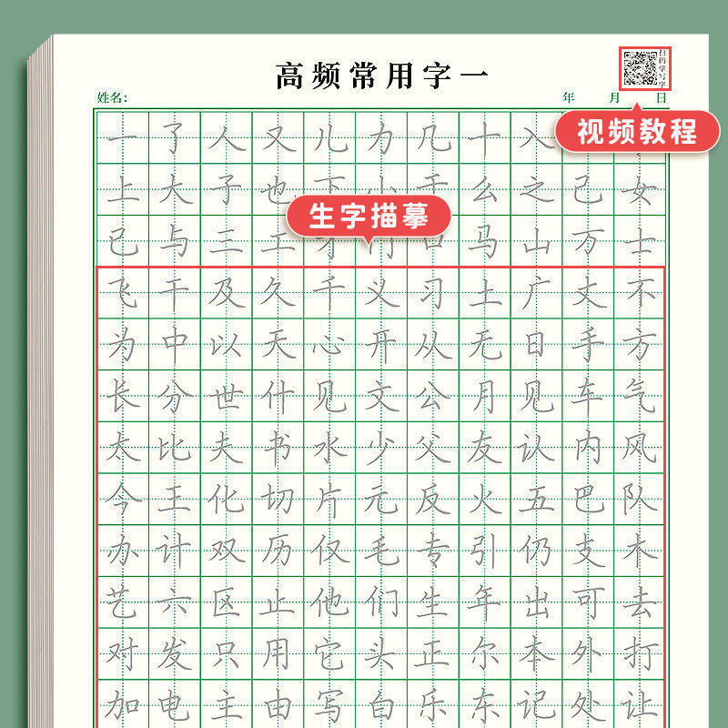 儿童楷书练字帖660个常用简单汉字字帖临摹控笔训练描红本可撕页
