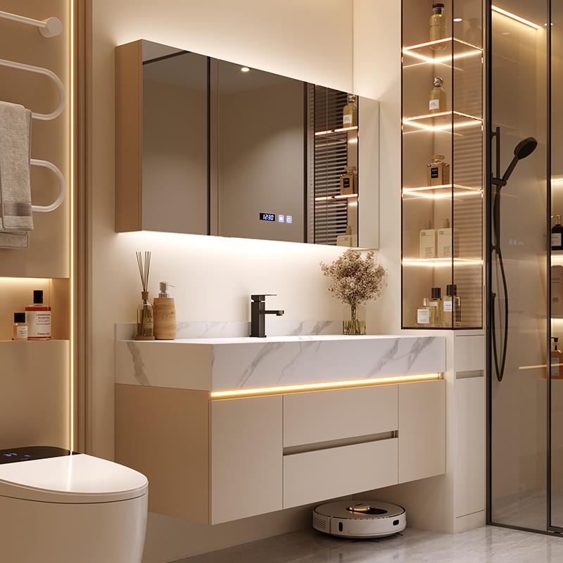 轻奢奶油风酒店款浴室柜组合盆卫生间热弯一体盆洗漱台洗手池饰品