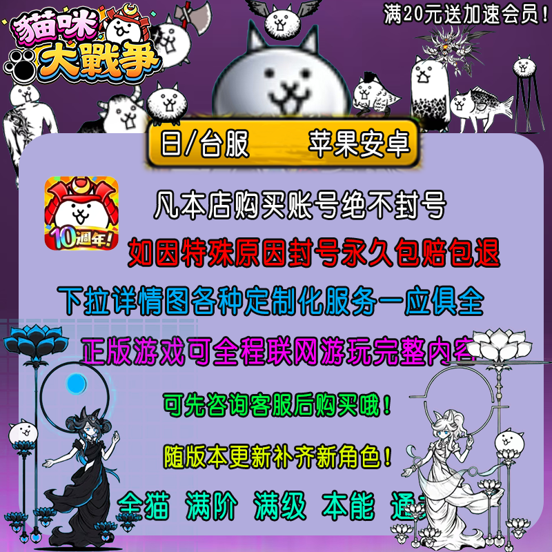 猫咪大战争台服/日服初始/修改号 下拉详情页查看套餐 一应俱全