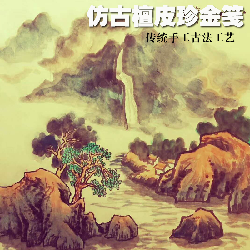 安徽宣纸纯手工仿古宣纸四尺六尺对开条屏书法专用纸复古半生半熟写意牡丹花鸟国画纸檀皮珍金珍银国展作品纸