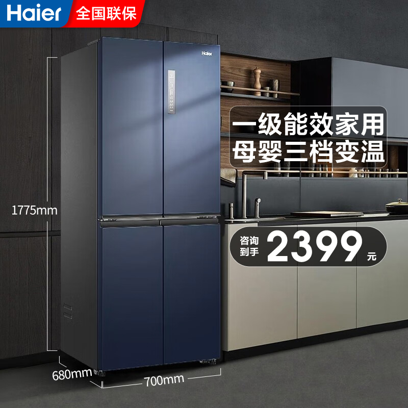 政府换新补贴海尔476L双开四门一级超薄风冷无霜家用大容量电冰箱