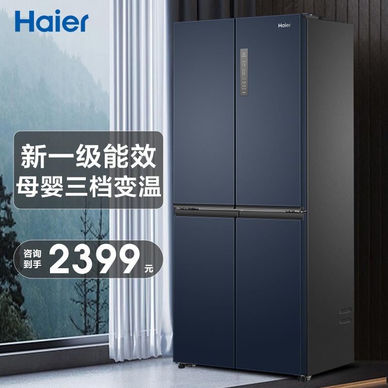 Haier海尔冰箱406L升一级能效家用十字对开四门无霜电冰箱旗舰店
