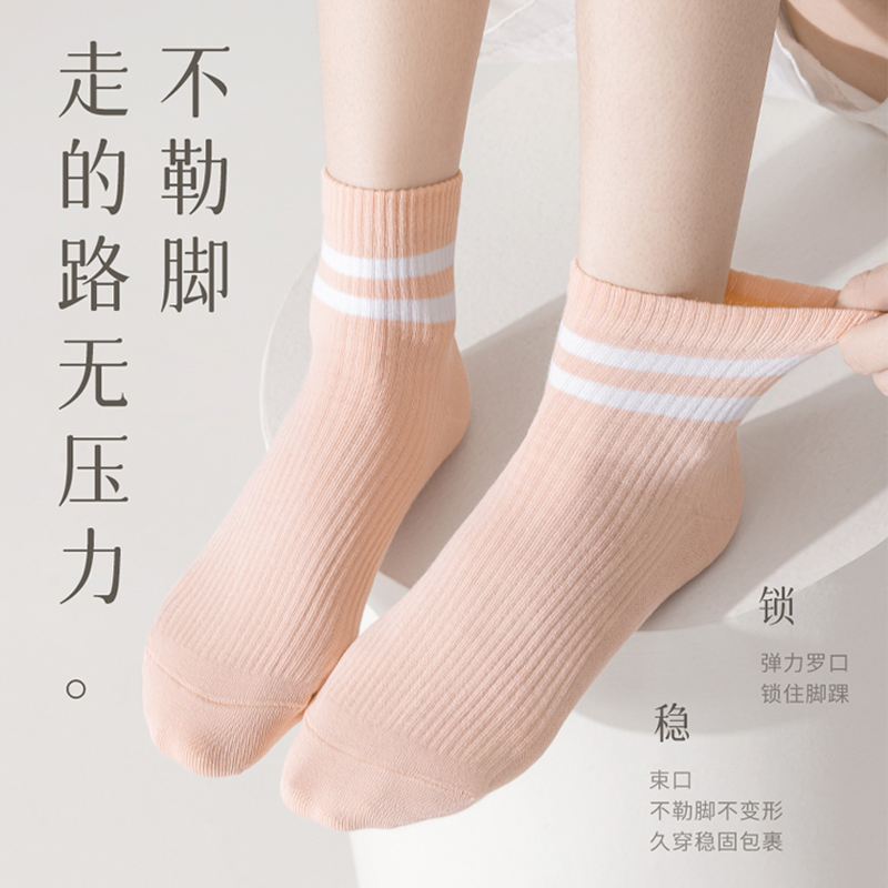 袜子女款纯棉中筒袜秋冬季抗菌防臭吸汗运动棉袜春秋款无骨短筒袜