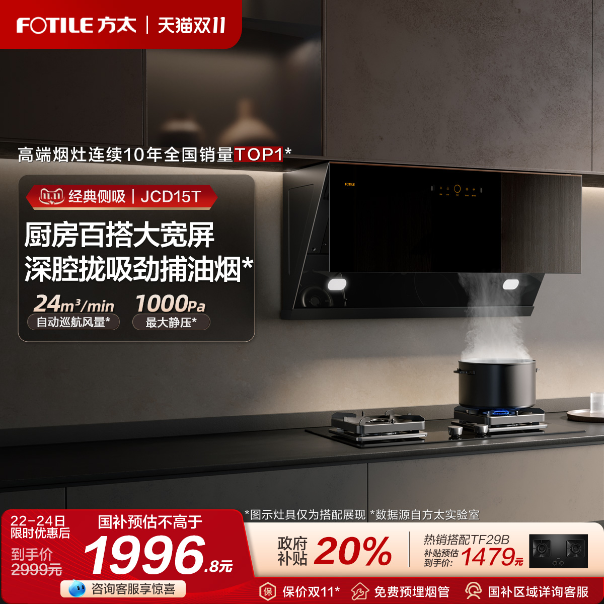 方太抽吸油烟机JCD15T以旧换新补贴侧吸式厨房家用官方旗舰店