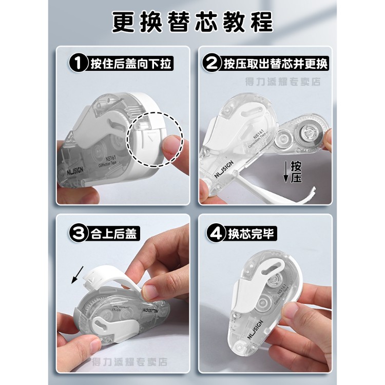 得力按动修正带学生用黑白改错带高颜值可换芯黑科技网红改正带渐变色修正带大容量休正带可换替芯修真带