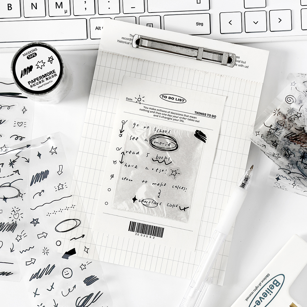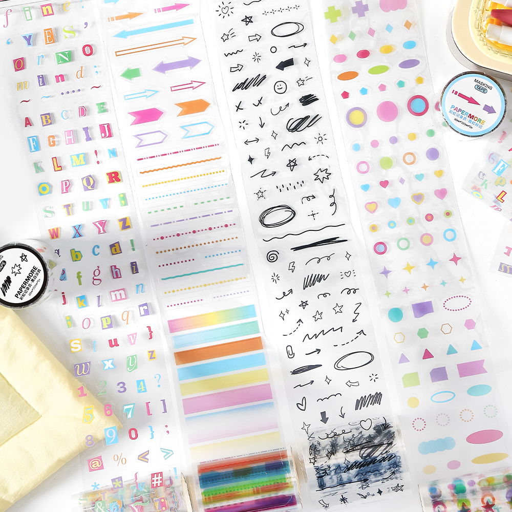 PaperMor新款彩虹记录员PET模切胶带 ins风韩系彩色符号英文字母重点标记涂鸦线条文字母手账素材贴纸共4款入