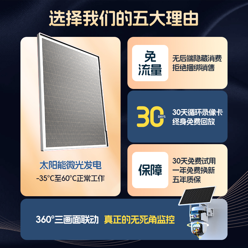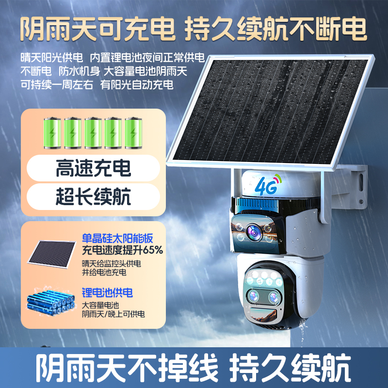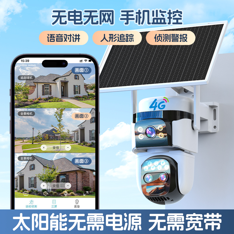 太阳能摄像头监控无网360度无死角手机远程4g无需室外夜视高清
