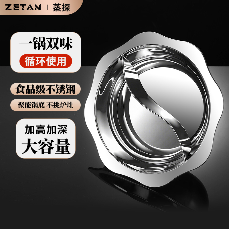 不锈钢加厚火锅盆家用鸳鸯锅电磁炉专用锅汤锅清汤锅火锅锅大容量