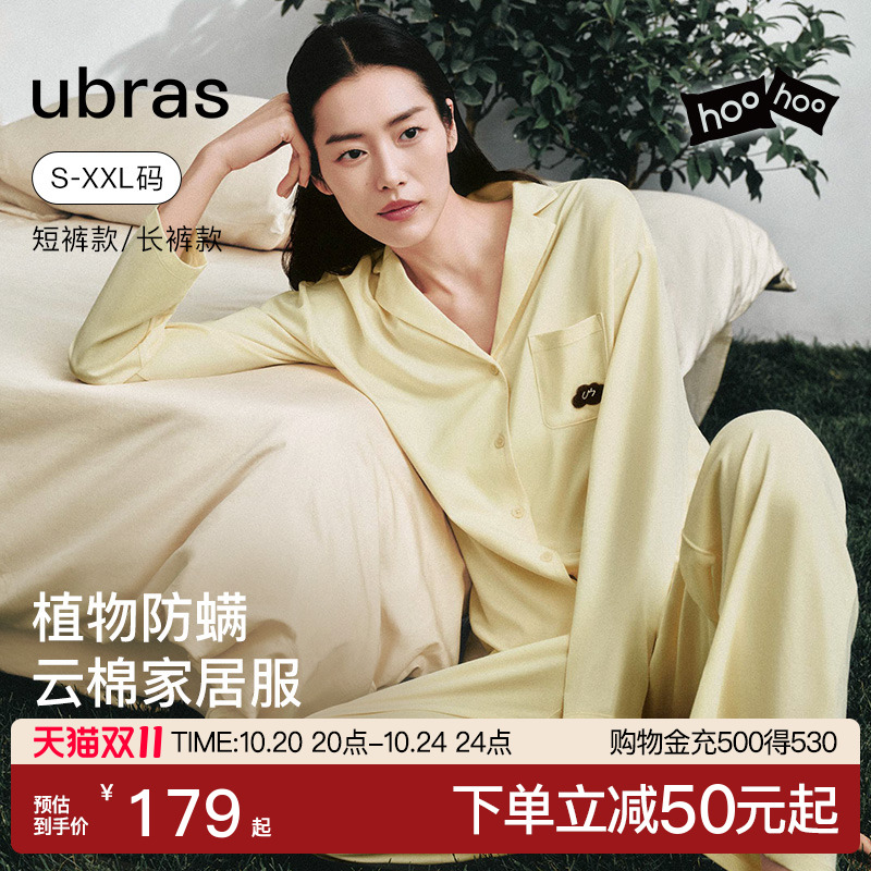 ubras纯棉家居服女士情侣睡衣套装可外穿100%棉布料男女款秋冬季