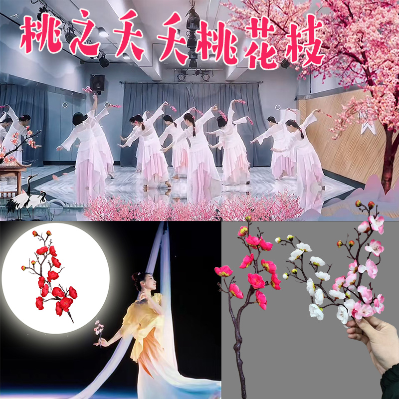 桃之夭夭同款古典舞梅花枝道具旗袍舞蹈用表演手握拿持假桃花枝