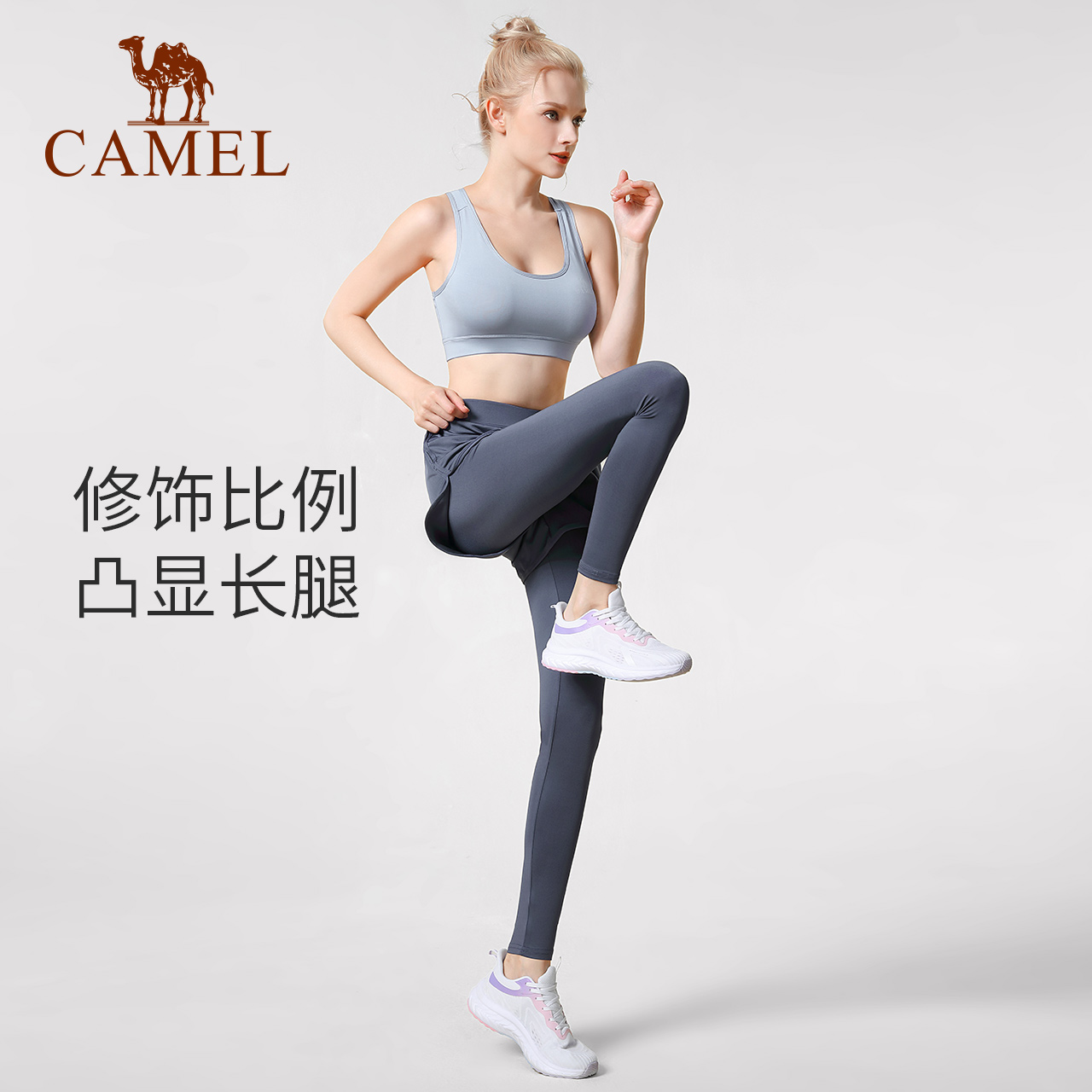 骆驼瑜伽服套装女夏季户外跑步服短袖运动服时尚专业健身服两件套