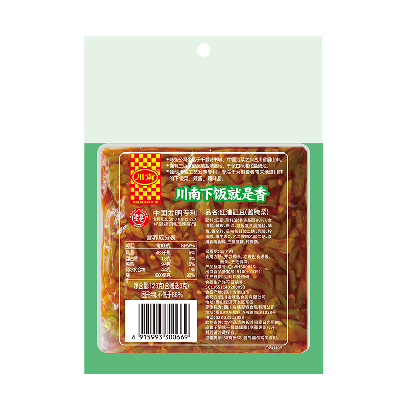 川南红油豇豆123g酱腌菜下饭菜咸菜早餐小菜爽口袋装什锦泡菜开胃