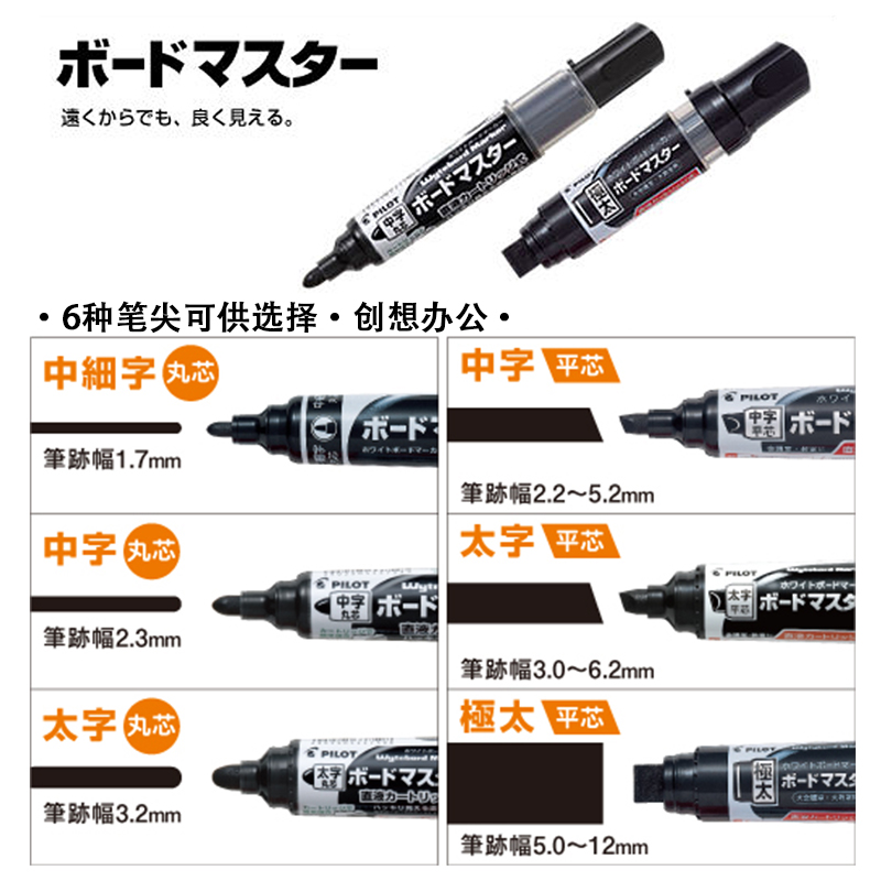 日本pilot百乐V办公直液大容量墨液培训班白板笔WBMAVBM-M 可加墨