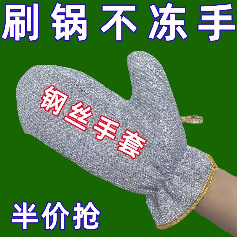 钢丝洗碗手套加长防水清洁隔热烫厨房刷碗女家用家务加厚耐用刷锅