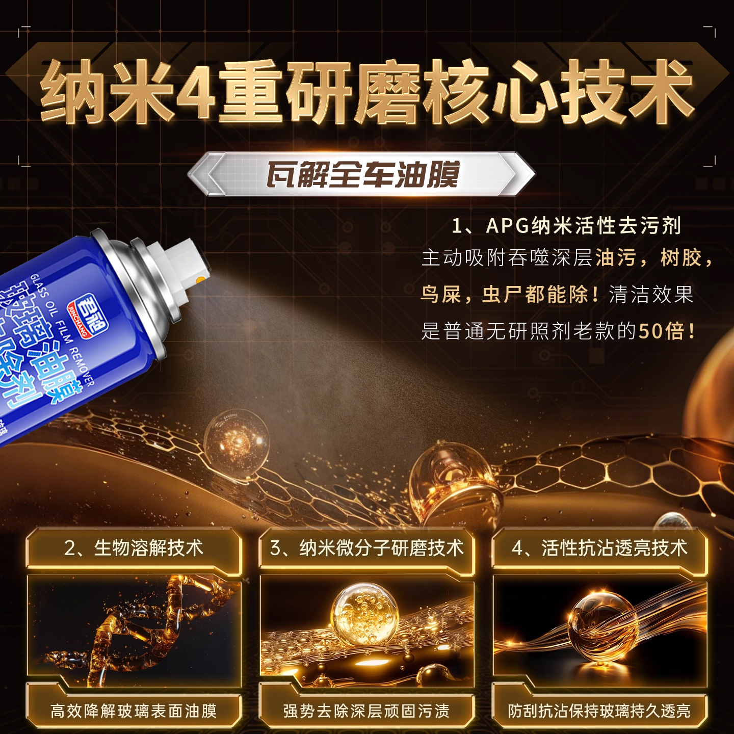 汽车去油膜清洁剂前挡风玻璃清洗剂强力去除污净油馍驱水翻新除胶