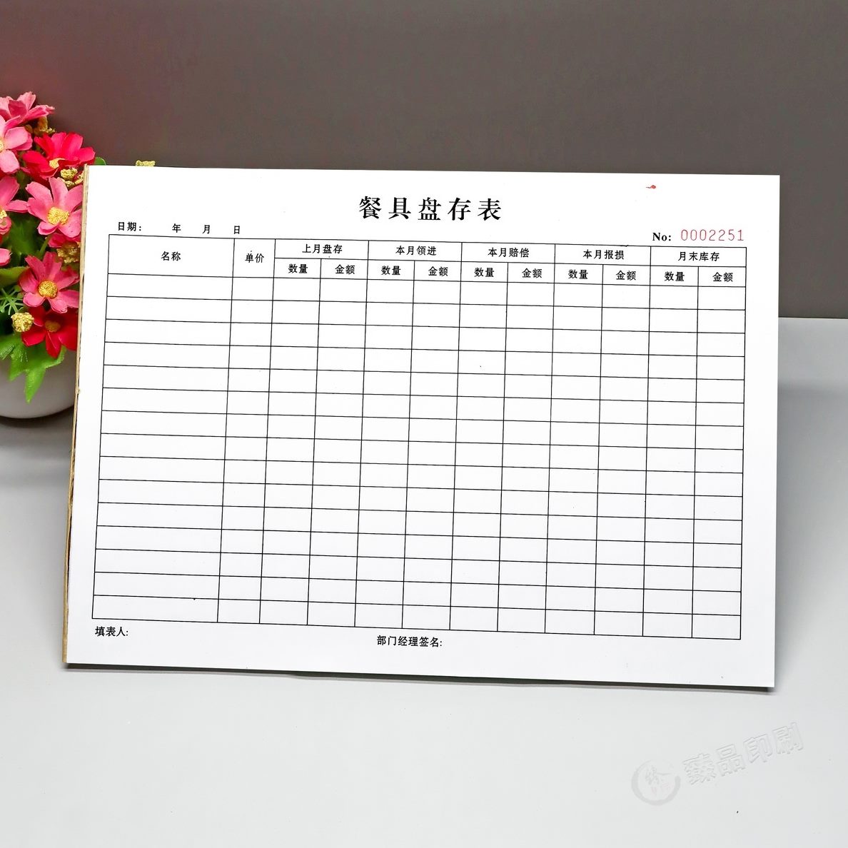 A4单盘餐饮盘本联酒店表餐具存定制库存点餐厅餐具管理登记表明细