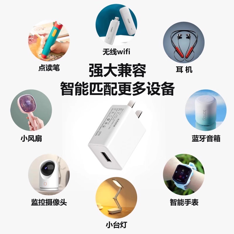 5V1A氮化镓快充充电头3C认证充电器插头蓝牙耳机监控摄像头点读笔智能手表小音箱电源适配器USB接口认证通用
