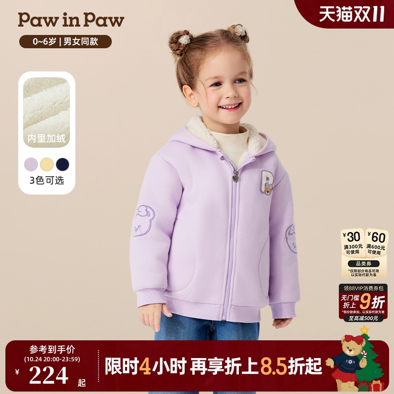 PawinPaw卡通小熊童装25年秋冬新款男女宝宝连帽外套柔软温暖