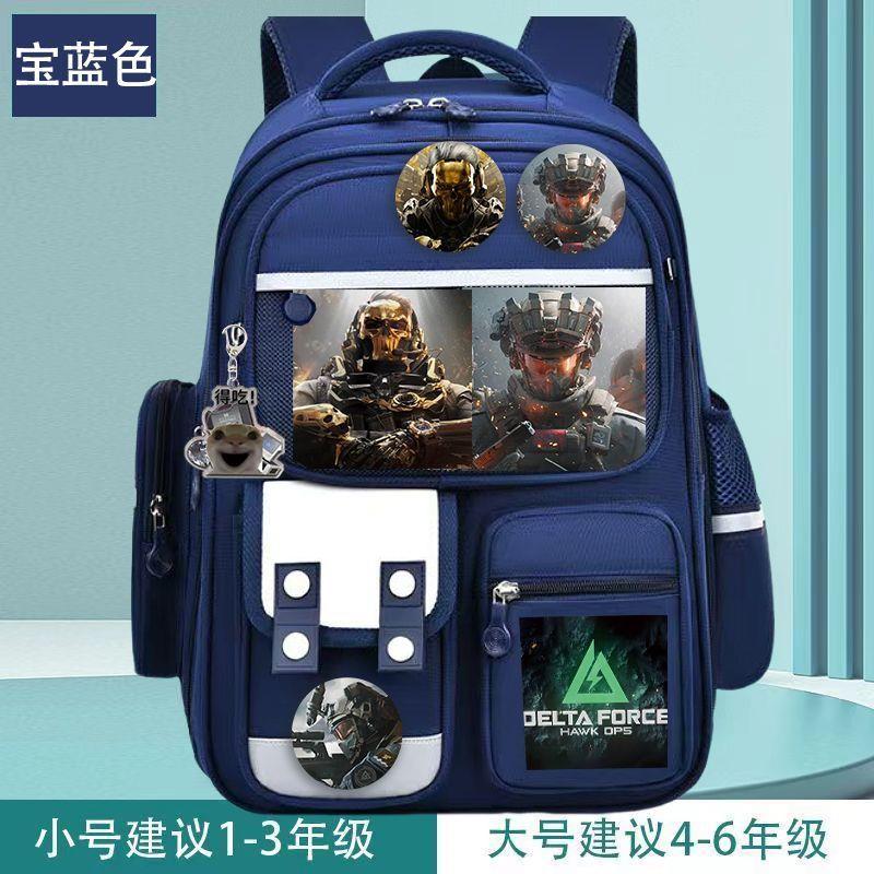 三角洲行动男生大容量护脊多层书包小学学生轻便耐脏双肩蓝绿