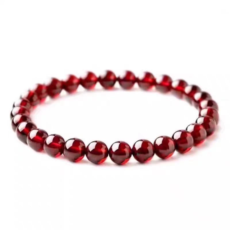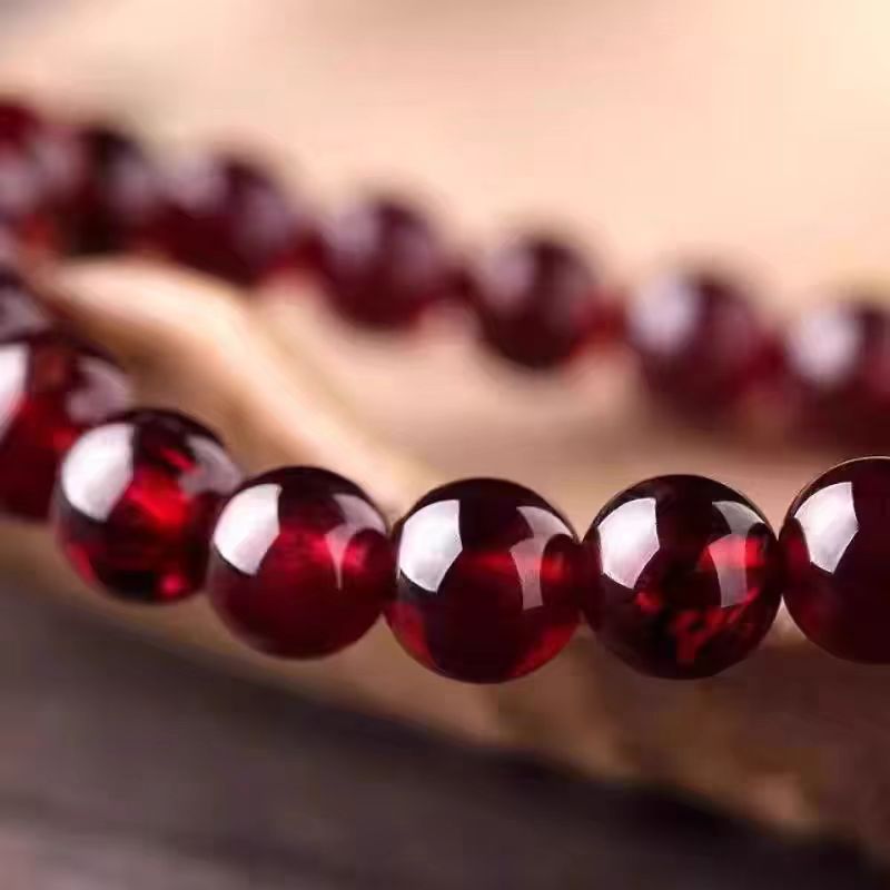 文雅美柔酒红色石榴石手链女清新朋克水晶半宝石现货单圈唯美手串