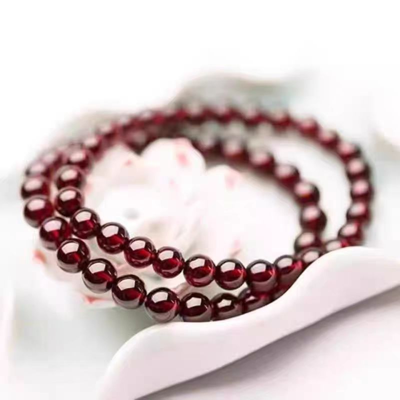 普陀山文创集天然石榴石手串女款全净体官方旗舰三圈水晶手链礼物