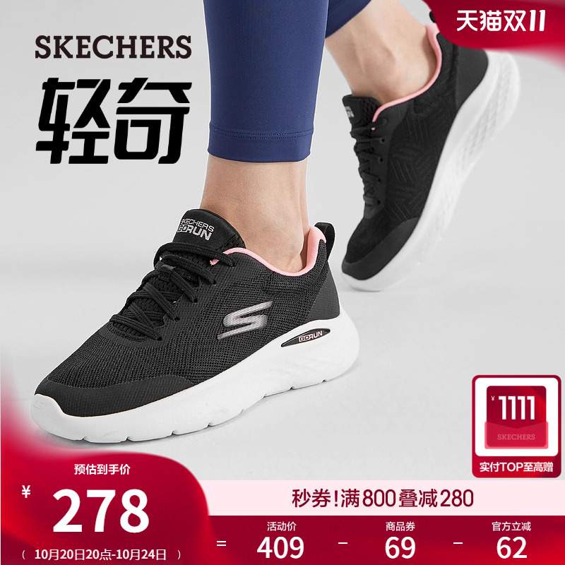 斯凯奇引跑者|轻奇系列秋季女回弹跑步鞋轻便厚底耐磨休闲运动鞋