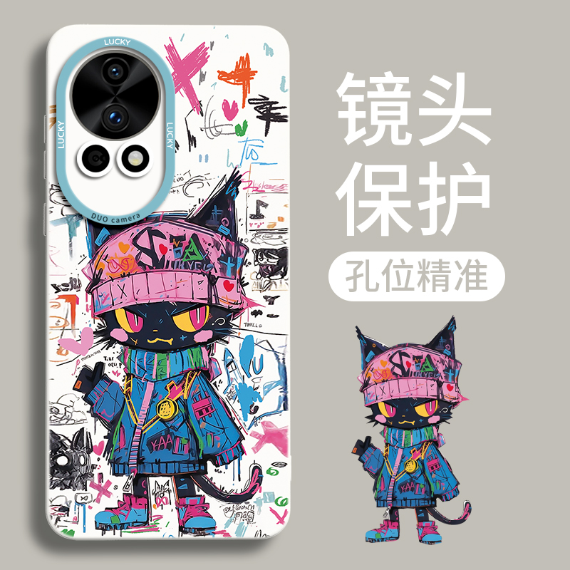 涂鸦小猫适用华为nova12手机壳智选HInova10新款女12ultra创9意8活7力版全包11Pro防摔液体硅胶por高级的卡通