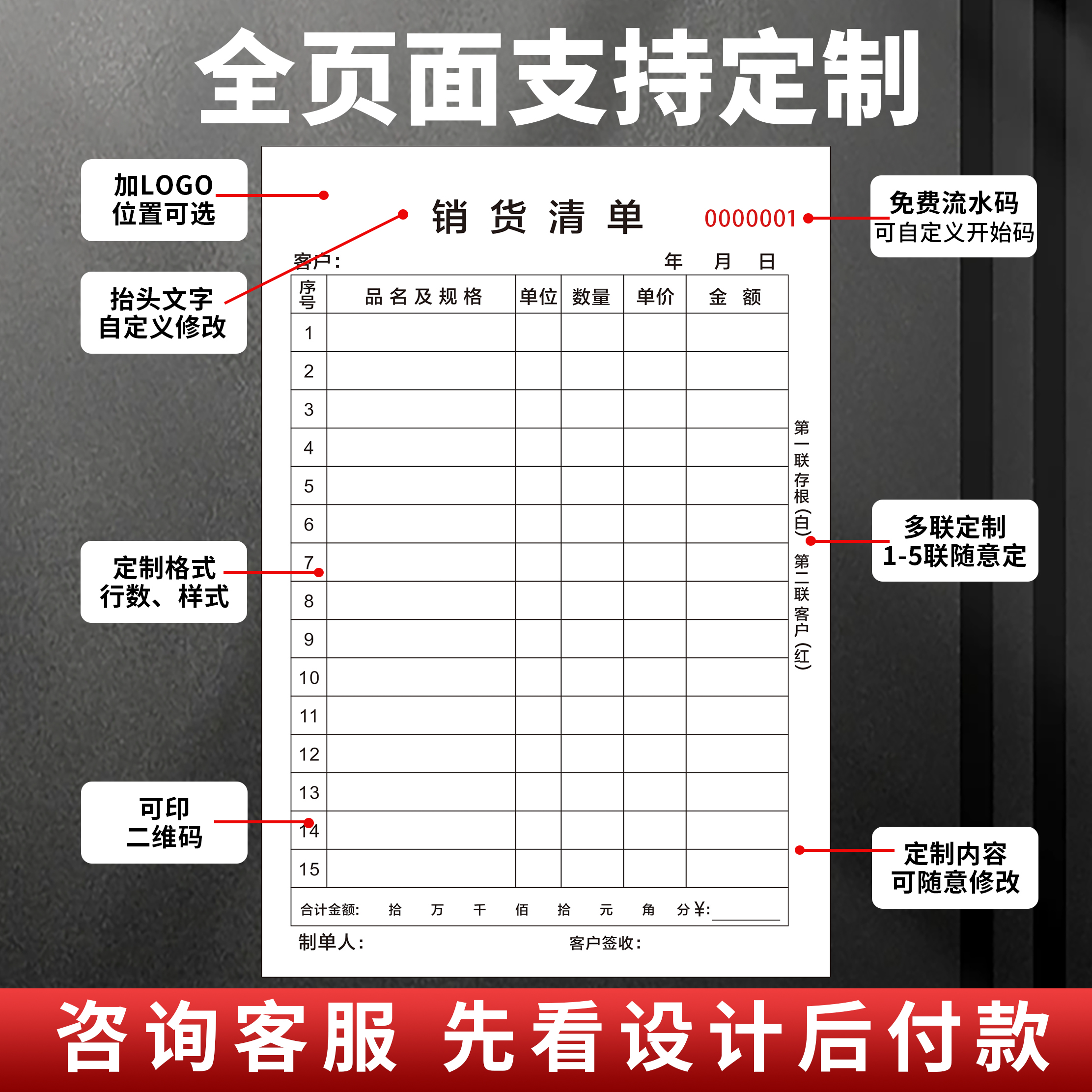 大号加厚销货清单二联三联定制销售小票两联单据收据票据印刷定做开单订单本订制发出货单销货单销售单100页