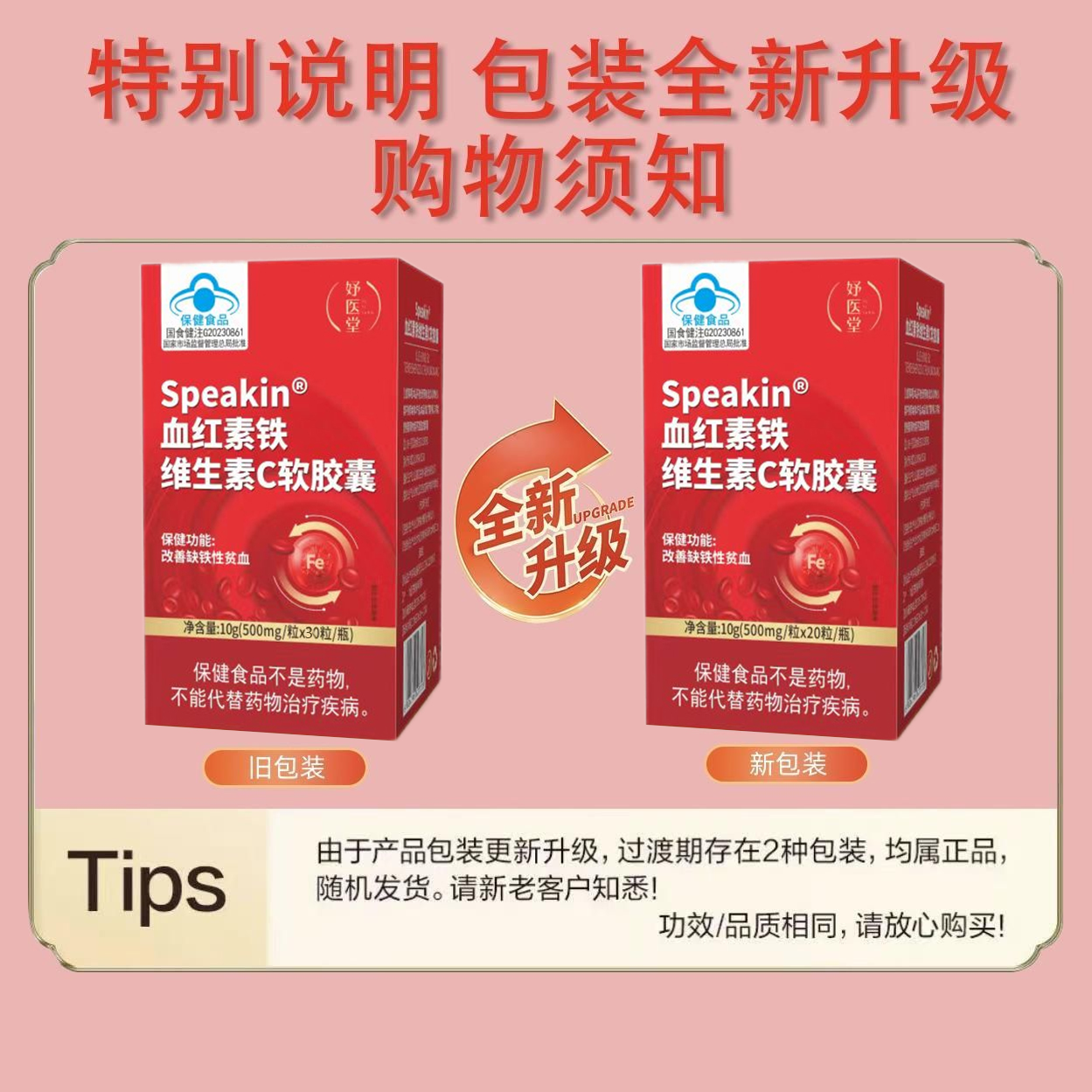 妤医堂Speakin血红素铁维生素C软胶囊调理气血月经贫血补气补血