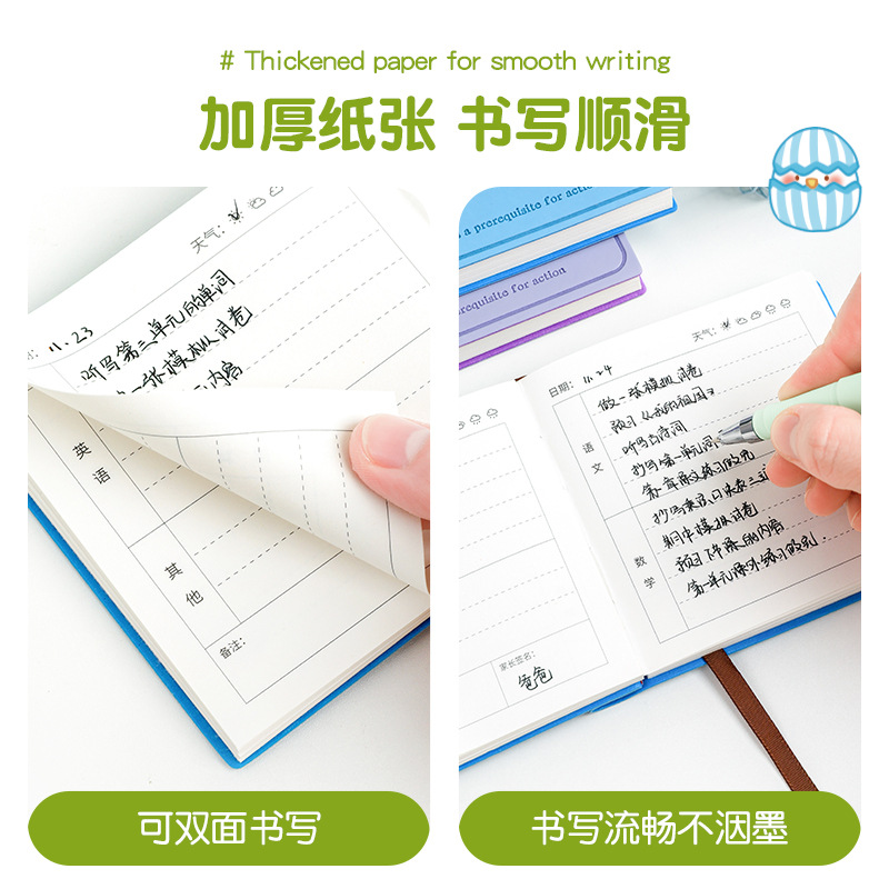 迷你方形插笔备忘单词本学生作业登记本随身豆豆本横线笔记本PU皮便携记单词老师拼音背诵听写完成检查摘抄