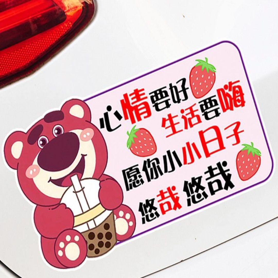 草莓熊心情要好生活要嗨愿小日子悠哉趣味文字汽车电动车装饰贴纸