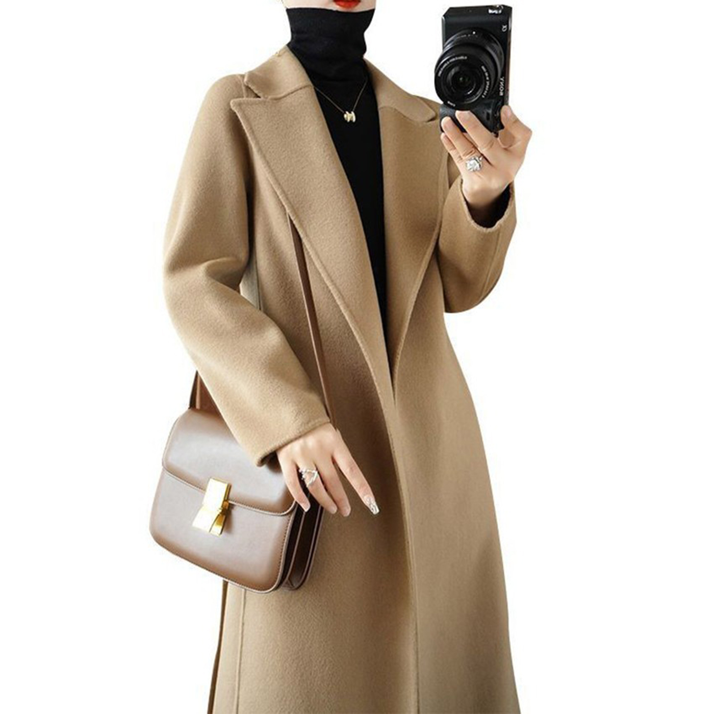 反季双面羊绒大衣女中长款2025新款西装领双排扣宽松显瘦毛呢外套