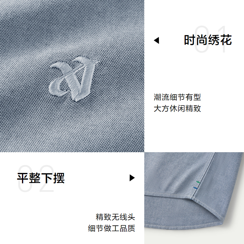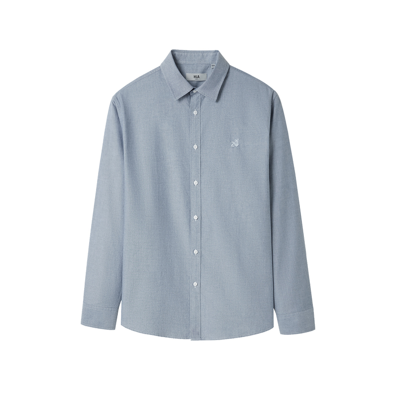 【纯棉牛津纺】海澜之家秋季新商务长袖休闲衬衫刺绣大码可选男装