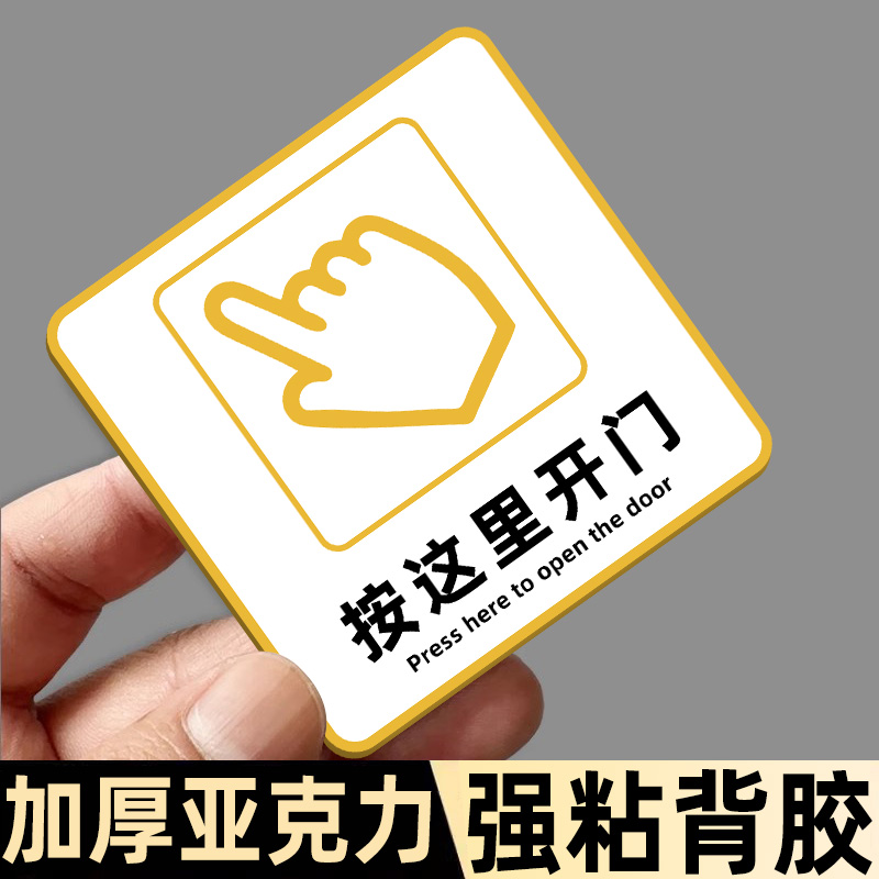 开门按钮提示贴开门请按这里按钮标识牌开门提醒贴按此开门贴纸门禁开关温馨提示牌按压开门按键指示牌贴定制