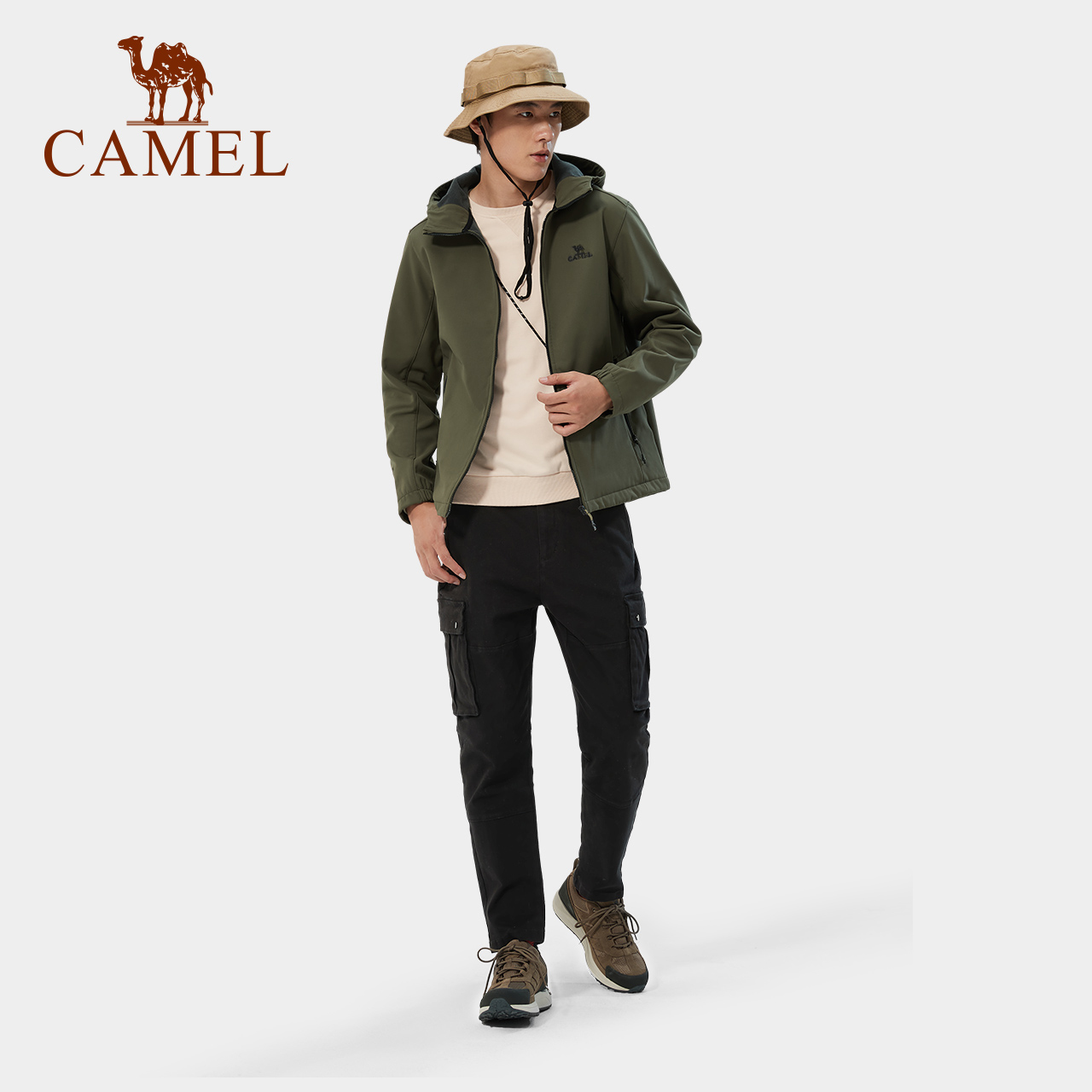 骆驼户外软壳衣外套男秋冬加绒加厚防风防水运动夹克连帽登山服女