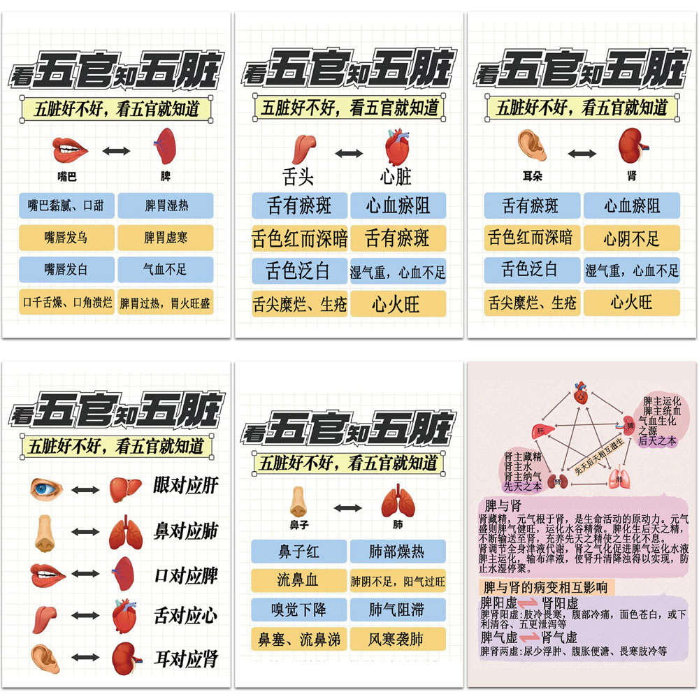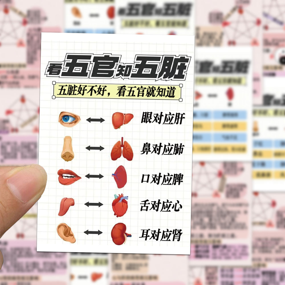 34张五脏六腑之间的关系知识贴纸中医基础健康养生科普贴画装饰