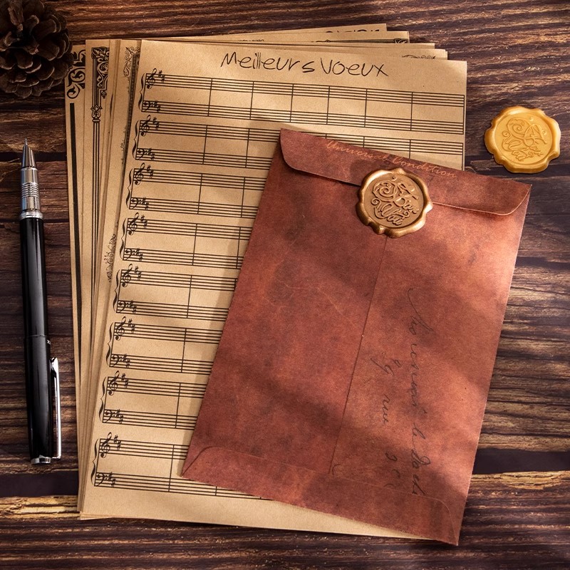 牛皮纸信封加信纸套装复古加厚大信封袋送老师精美高级感信笺中式浪漫手写情书生日表白送男友邮票中国邮政