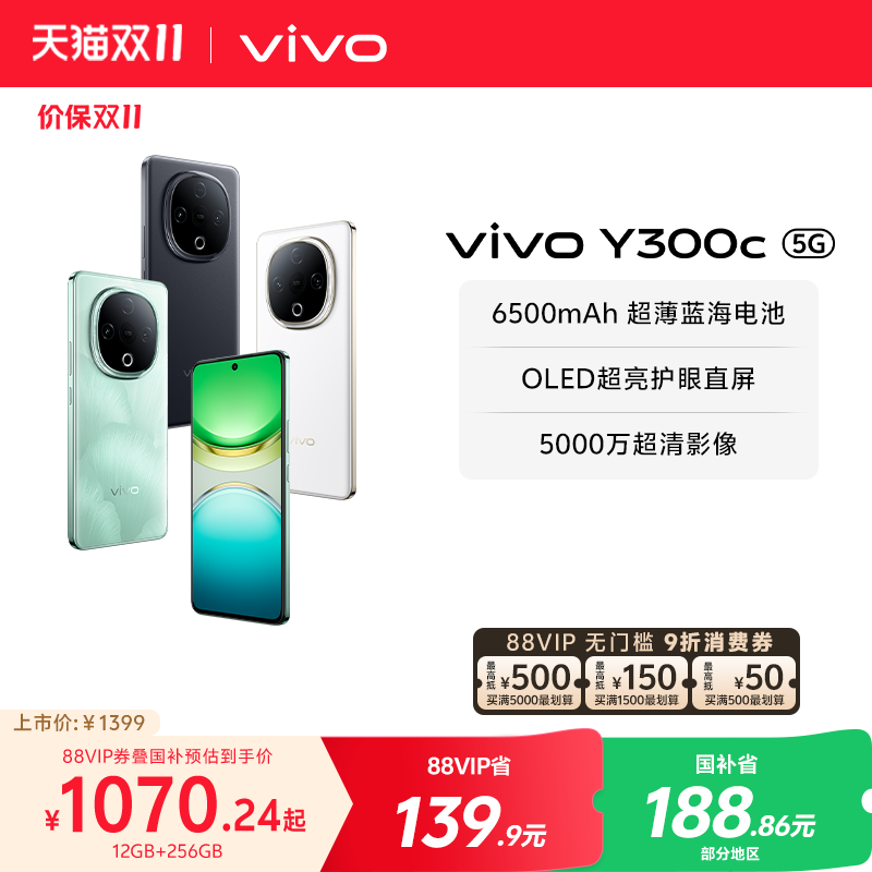 【国家补贴至高立省15%】vivo Y300c新品6500毫安大电池长续航大内存抗摔护眼直屏学生手机官网正品
