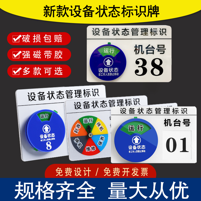 注塑机机台号状态牌 仪器指示牌机器号码牌标志牌机台编号号码牌运行停机检修 机台状态 机器设备状态标识牌