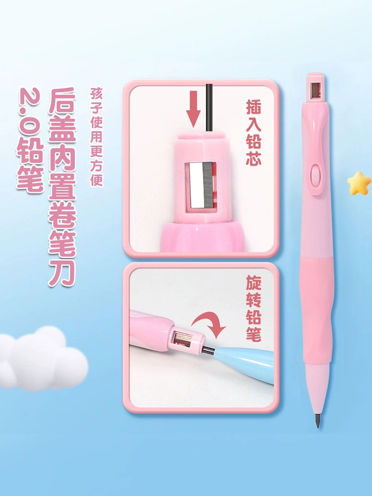 海豚自动铅笔不断芯2.0小学生专用莫兰迪色自动笔儿童一年级初学者二年级矫正握姿粗杆练字用HB矫正加粗铅芯