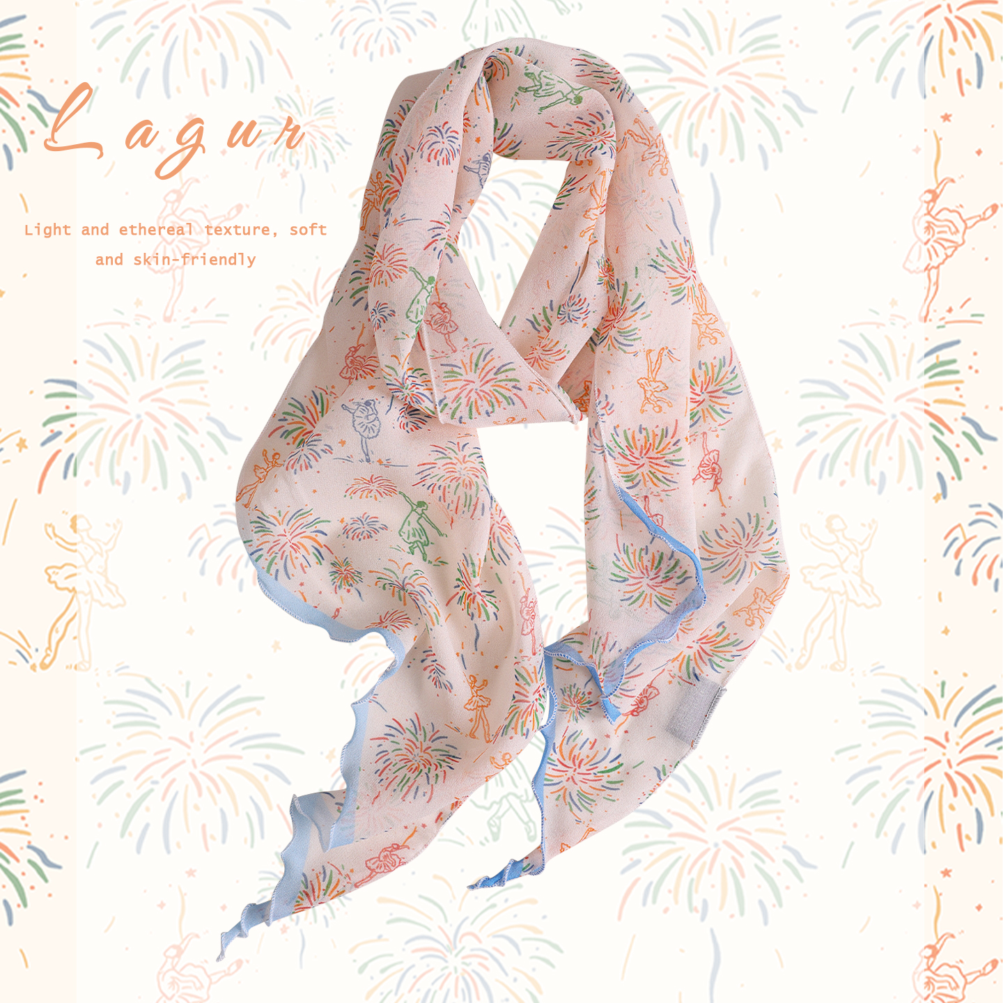 「欢庆之时·彩色烟花」原创100%乔其纱真丝丝巾系脖高级感发饰女