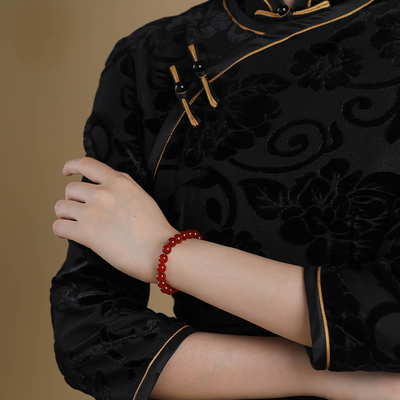 本命年红玛瑙手串女冰种水晶玉石串珠喜庆高冰玉髓转运珠手链礼物