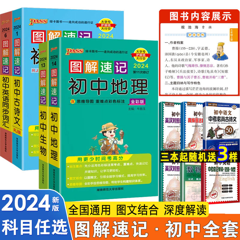 2024新版丨pass绿卡图解速记初中初中口袋书 全国通用7-8-9年级编写工具书语数英政史地物化生思维导图重难点