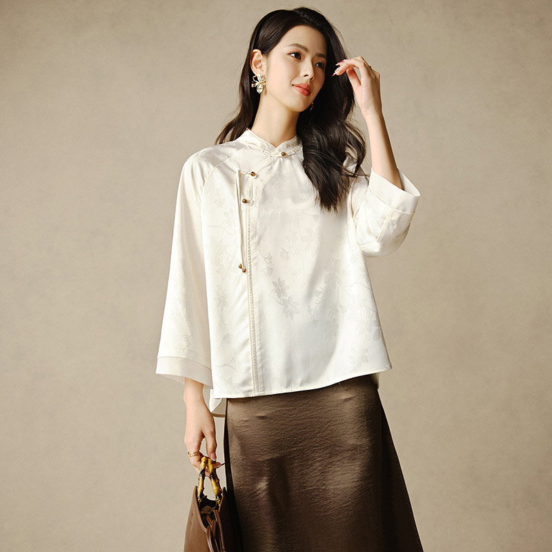 晚白2025年秋新款时尚新中式衬衫休闲国风轻熟提花衬衫女