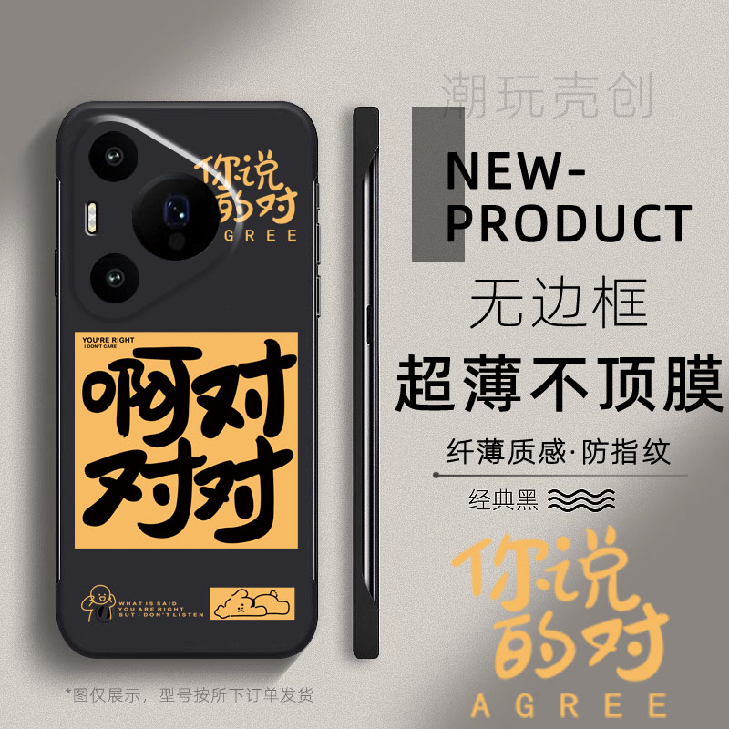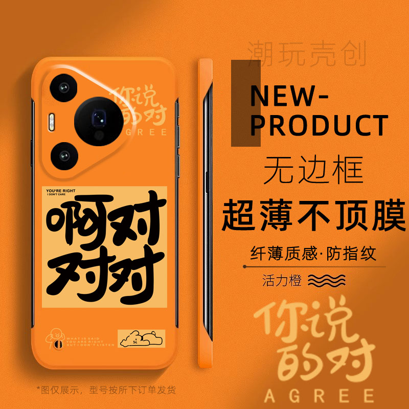 适用华为PURA70手机壳P80PRO超薄无边框P60趣味文字啊对对对P30半包10个性MATE70创意MATE60RS新款40防摔硬壳