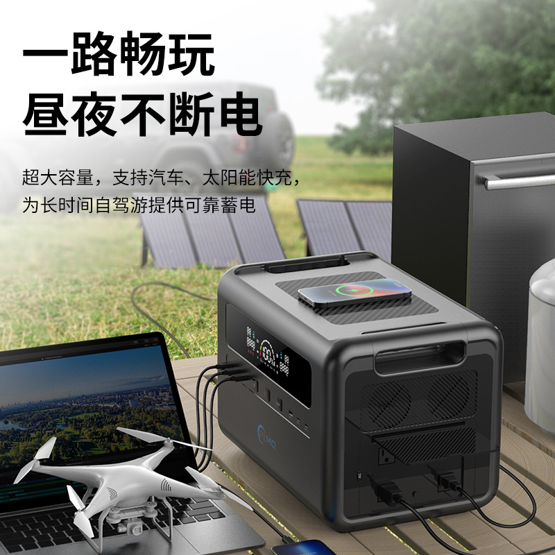2度电2400W双向逆变快充储能电源220V/110V磷酸铁锂电池户外电源