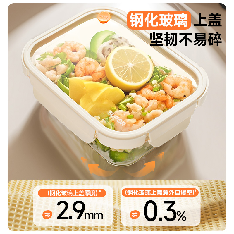 苏泊尔玻璃饭盒微波炉加热专用饭盒食品级保鲜盒上班族密封餐盒碗