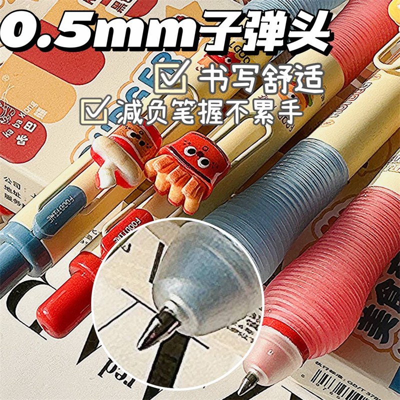 ST刷题笔高颜值按动中性笔圆珠笔黑色水笔小学生专用考试0.5速干碳素笔水性黑笔按压式做笔记签字笔非按斤卖