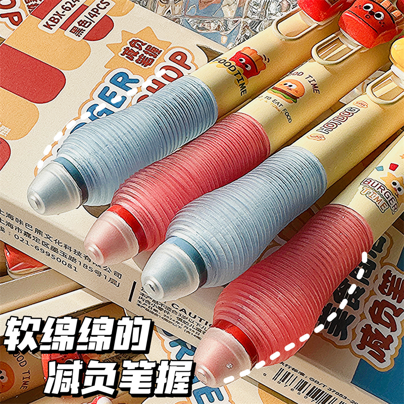咔吧熊新款美食商店限定高颜值ins可擦笔软握按动中性笔学生练字专用0.5mm子弹头好写可替换晶蓝黑笔芯