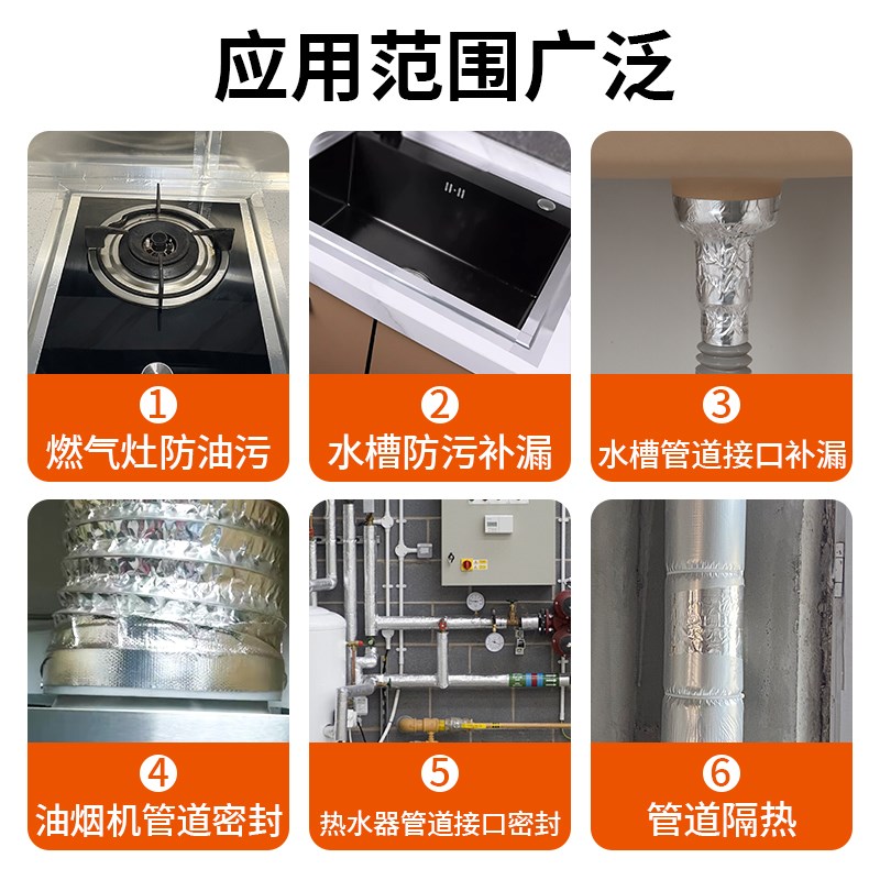 油烟机管道密封胶防油渍耐高w温铝箔胶带排烟管水管隔热加厚包扎